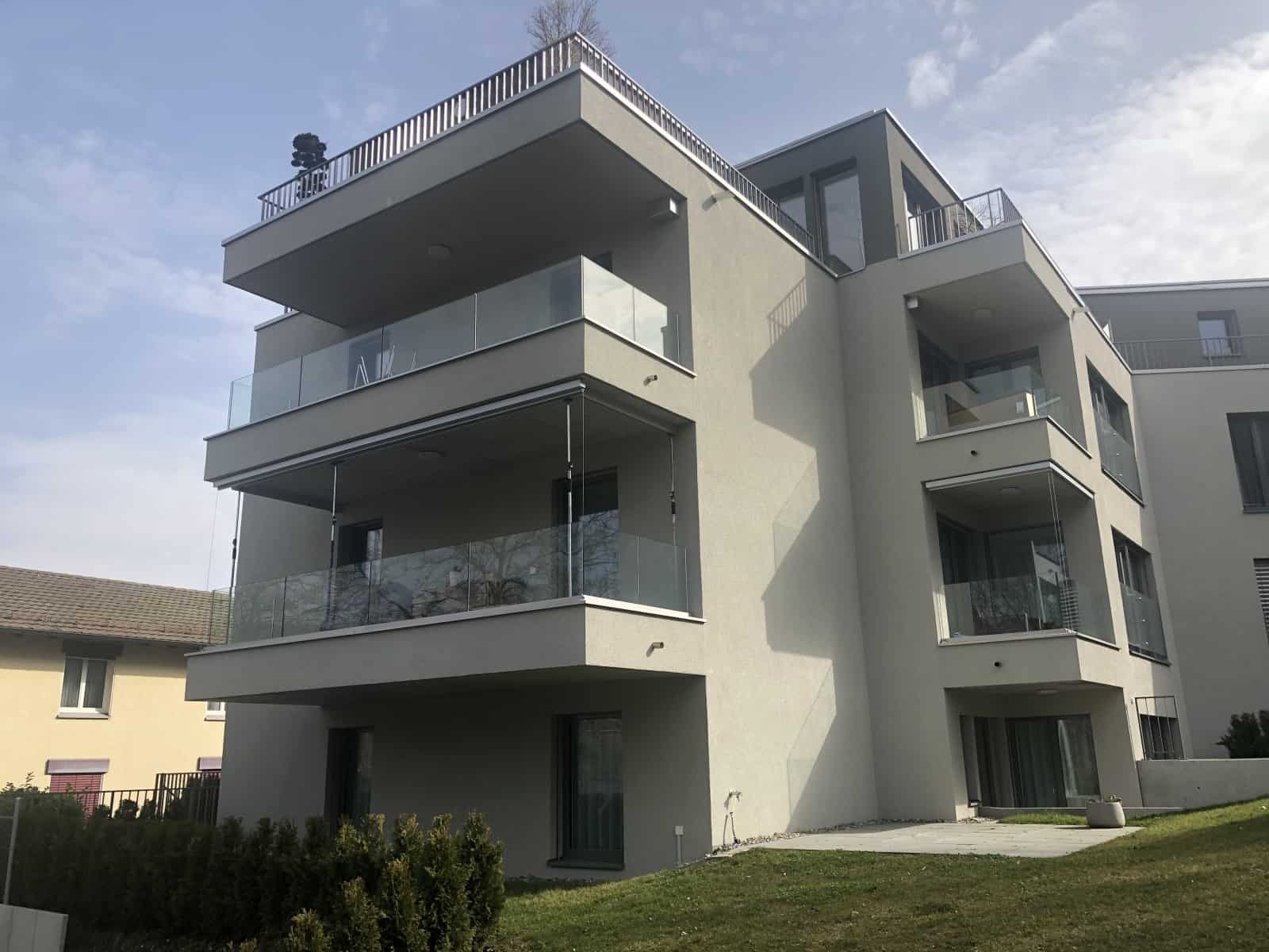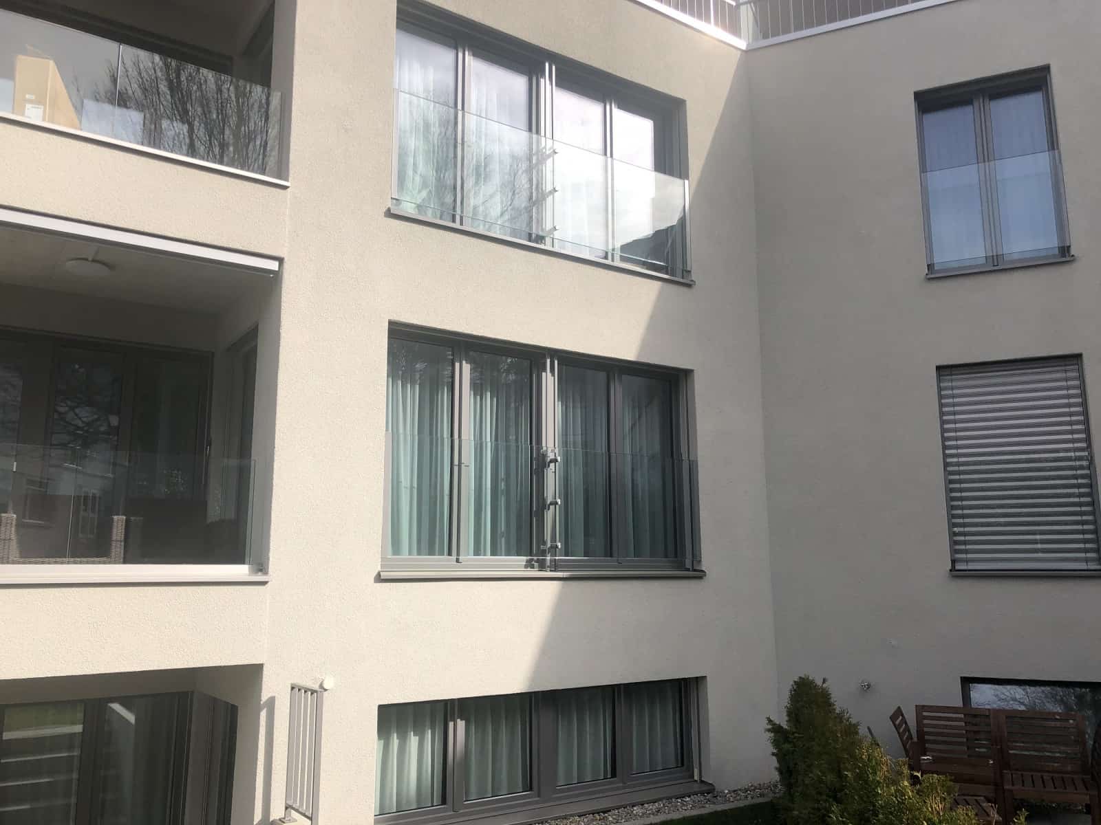 Balkon Ganzglasgeländer und französische Geländer ebenfalls in Ganzglas