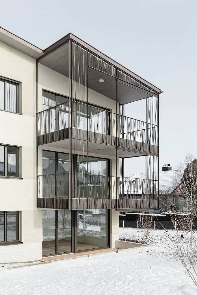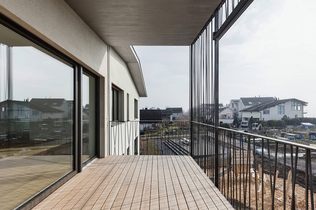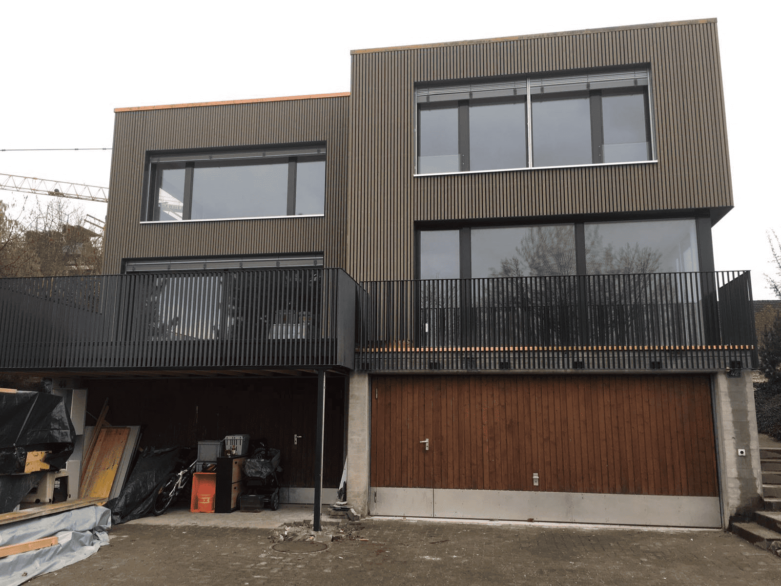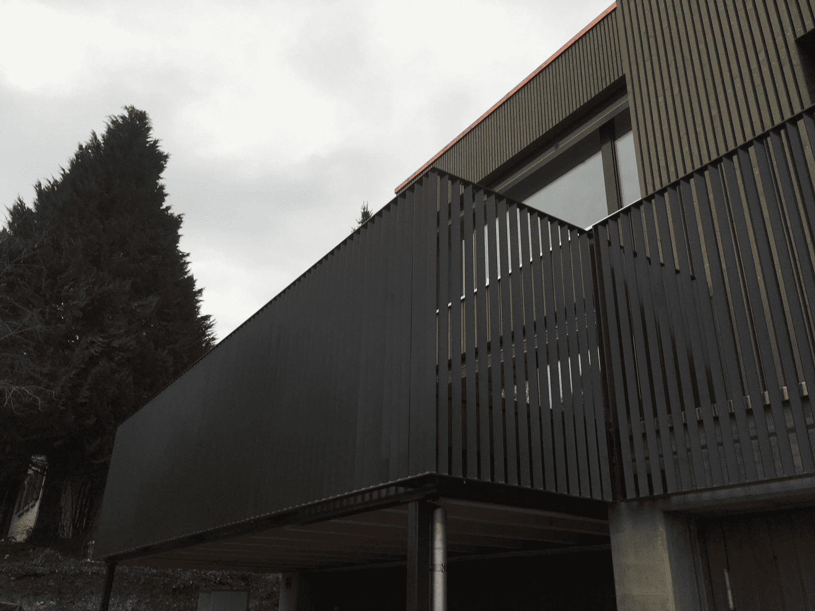 Balkongeländer mit Holzlatten und Stahl Unterkonstruktion